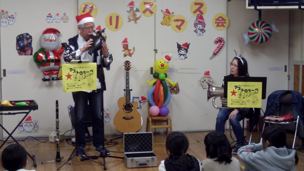 西円通寺児童館『クリスマス会』 2026年1月3日 最終更新日時 : 2026年1月3日 ばーど 2025年12月20日(土曜日)、西円通寺児童館でのクリスマス会にお招きいただき、演奏してきました。ふだん生の楽器演奏に触れる機会があまりない子どもたちも多く、熱心に演奏を聞いてくれました。